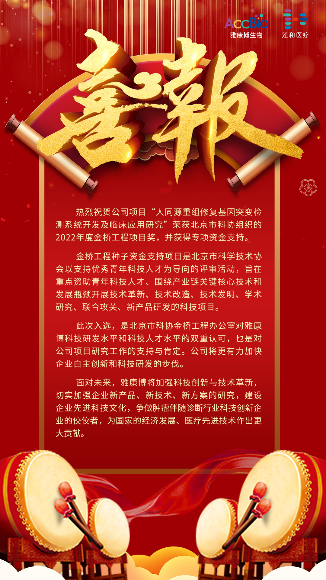 喜報(bào)-雅康博榮獲 2022年度金橋工程種子項(xiàng)目獎MORE來源:時間:2022-09-09點(diǎn)擊:2661